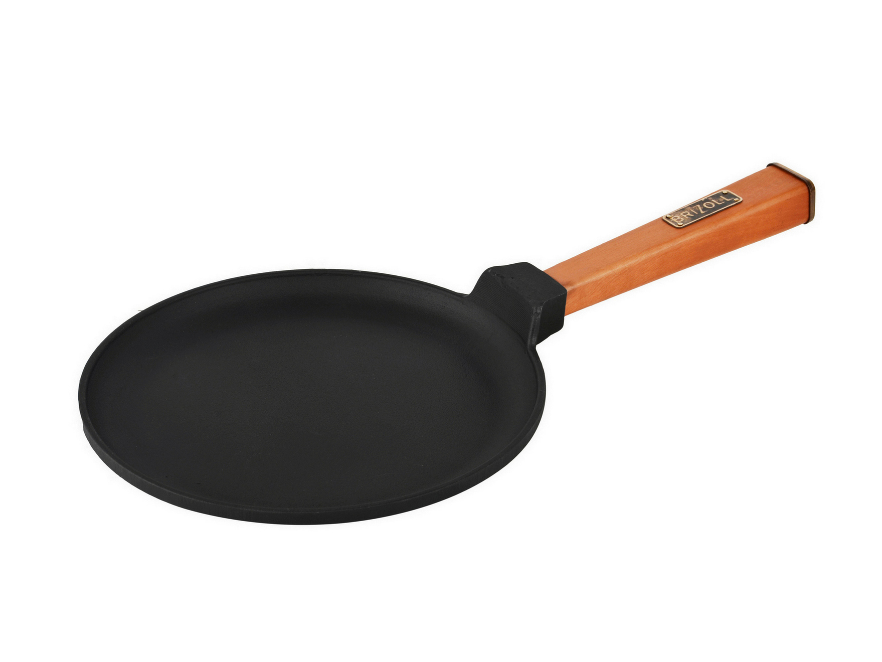 Сковорода для блинов изготовлена из литого чугуна, ручка выполнена из ольхи, имеет эргономичную форму и удобно лежит в руке. В ассортименте сковорода представлена в диаметре 220 и 240 мм. Низкая высота стенок, 15 мм, обеспечивает комфорт в приготовлении блинов. Поверхность износостойкая и пригодна для использования металлических лопаток, ложек и т. д. Перед первым использованием чугунной посуды ее нужно подготовить, чтобы очистить от технического масла, которым производитель защищает посуду от попадания влаги в поры чугуна и дальнейшего ржавления.
