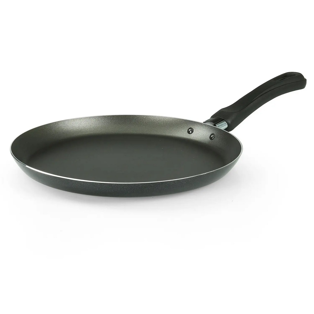 Эта сковорода с невысокими бортиками очень удобна для быстрого приготовления блинов или яичницы. Сковорода на столько же легка, на сколько и сам процесс приготовления на ней. Полированное дно с концентрическими канавками делают нижнюю поверхность менее скользкой, соответственно процесс приготовления – более безопасным. Легкая эргономичная ручка из бакелита удобна для удержания в ладони.