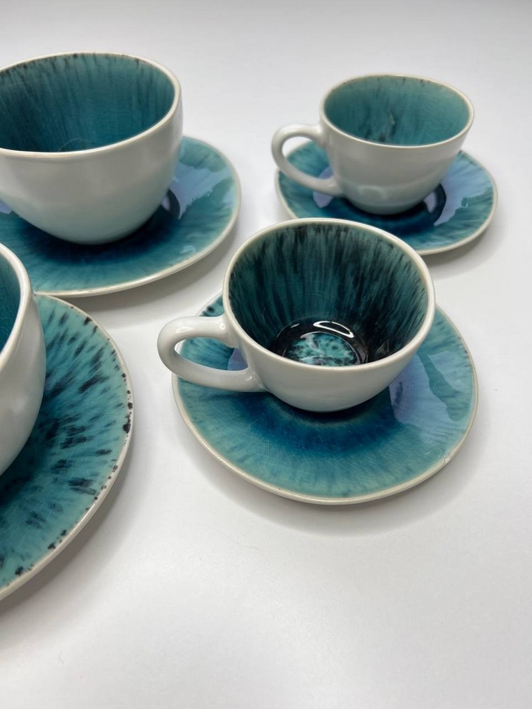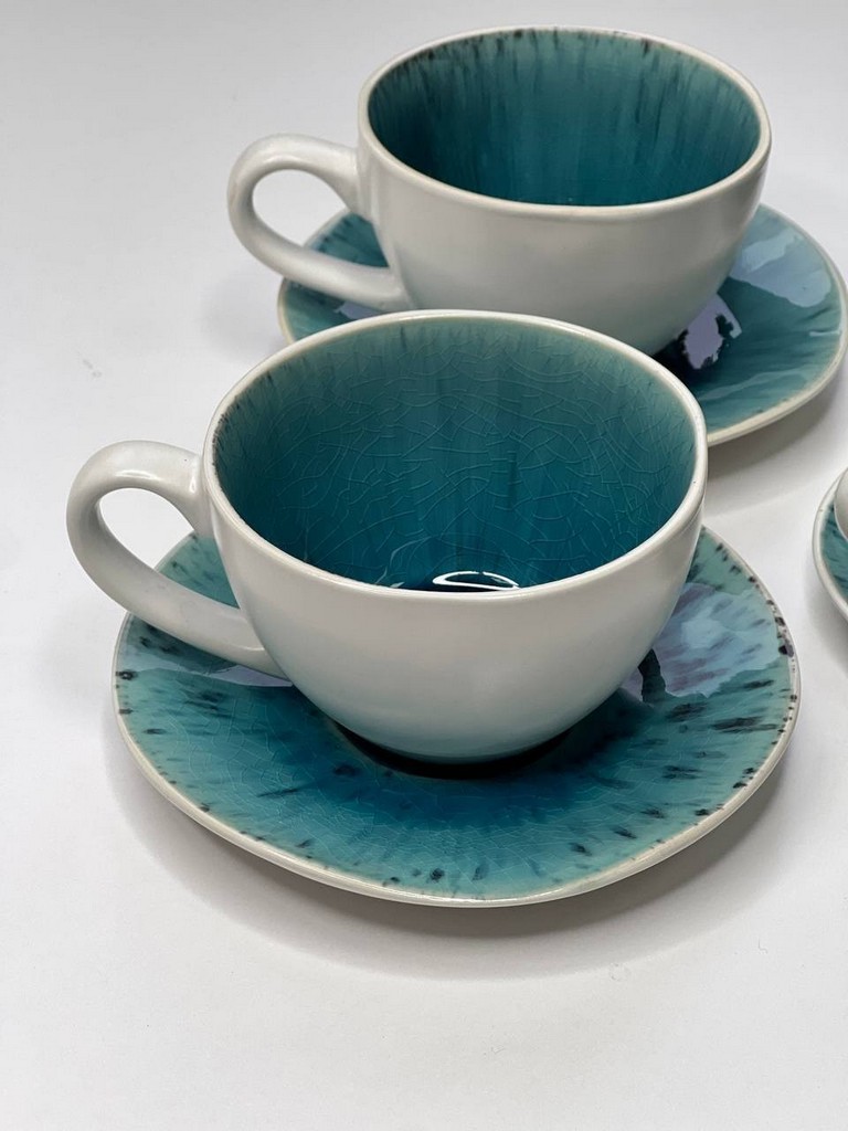 Набор выполнен из прочной керамики, не поддающейся деформациям. Для этого материала была взята отборная глина, которая тщательно обрабатывалась на производстве. Каждое блюдце и чашка покрыты слоем глянцевой глазури. Идеальные блики – это настоящее удовольствие для эстетов. Изделия не темнеют и не желтеют при правильном уходе. Им не страшны царапины и сколы.