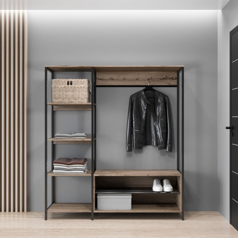 Комплектация: вешалка, этажерка, подставка для обуви, фурнитура