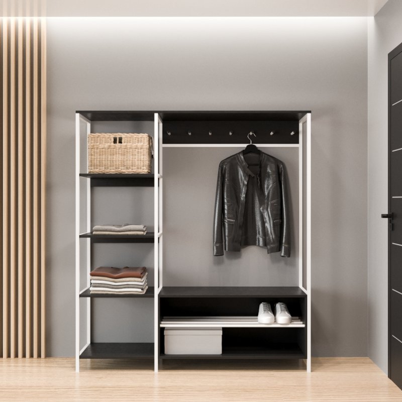 Комплектация: вешалка, этажерка, подставка для обуви, фурнитура