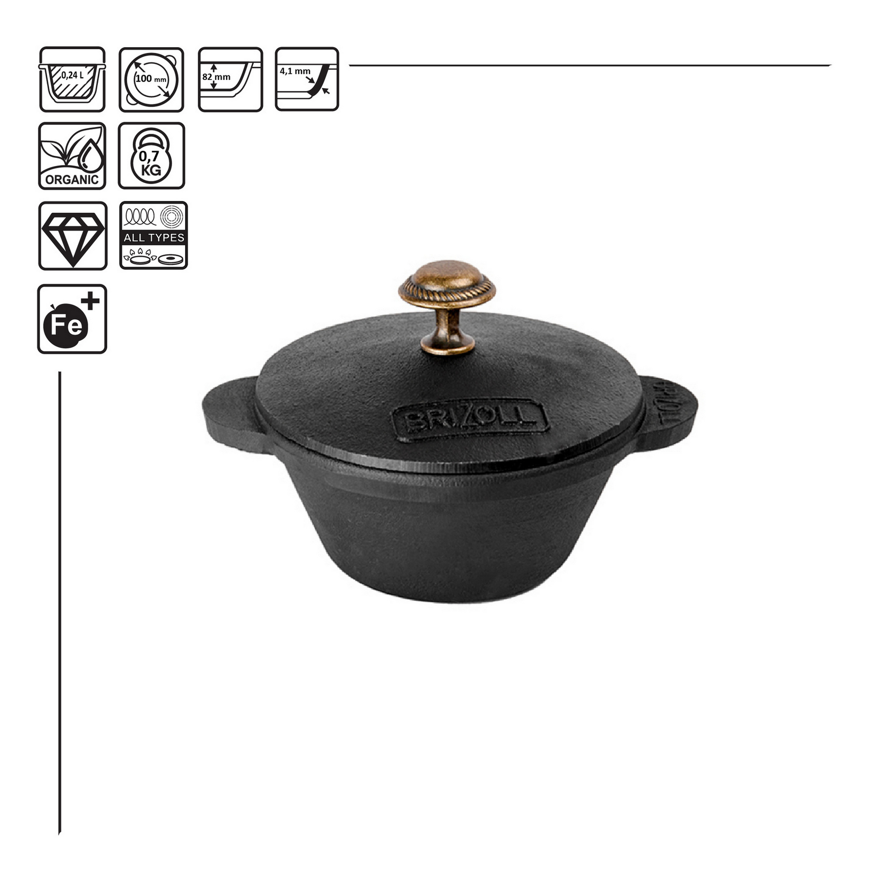 Небольшая кастрюлька объемом 0,2 л чаще всего используется для порционной подачи блюд в ресторанах. Кроме эстетики такая подача имеет и практическое значение, ведь чугун долго сохраняет тепло, соответственно, блюдо намного дольше остается горячим. Можно без спешки наслаждаться вкусом и при этом вести неторопливую беседу с друзьями. Такие кастрюльки чаще всего используются для приготовления жульена и предусматривают подачу в горячем виде. Можно готовить в таких кастрюльках, а можно подавать в них уже готовые блюда. Если вы хотите удивить своих близких не только вкусом блюд, но и оригинальной подачей, – стоит обратить внимание именно на такую порционную посуду! Перед первым использованием чугунной посуды ее нужно подготовить, чтобы очистить от технического масла, которым производитель защищает посуду от попадания влаги в поры чугуна и дальнейшего ржавления.