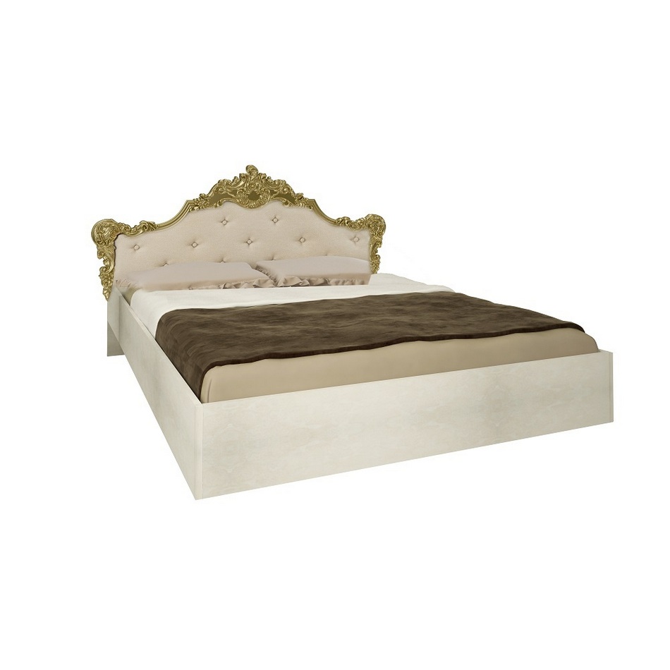 Красота и изысканность кровати «Victoria» выделяется декоративными накладными элементами цвета золото, что придает объемности. Светлые и нежные тона в сочетании с золотом максимально точно передают всю роскошь классического стиля. Изголовье кровати украшено бежевой экокожей. Кровать без подъемного механизма и без каркаса.