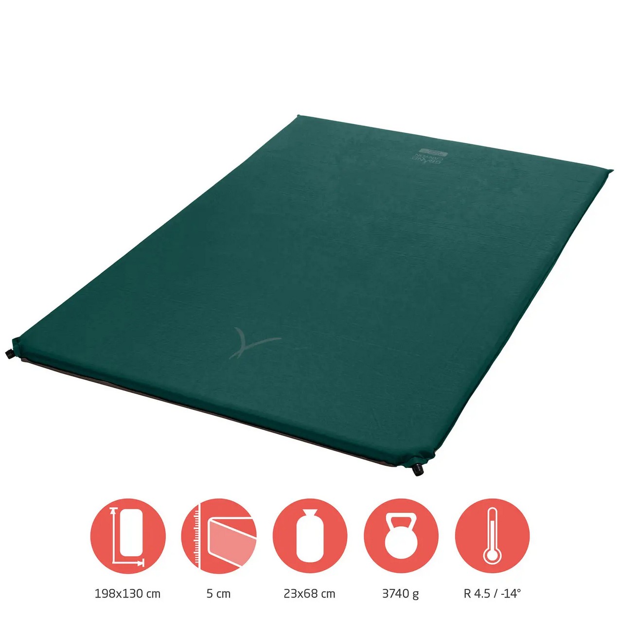 Самонадувающийся коврик Grand Canyon Hancock 5,0 Double - это двухместная удлиненная версия, которая предоставляет высокий уровень комфорта двум пользователям даже крупной комплекции с ростом до 2 метров и обеспечивает надлежащие термоизоляционные свойства при температуре до -14°С. Верхняя оболочка Hancock 5,0 XW имеет мягкую на ощупь текстильную поверхность, нижняя сторона минимизирует скольжение на гладком полу палатки. Коврик имеет пару клапанов, что положительно сказывается на скорости надувания и спуска воздуха. Простые в использовании винтовые клапаны обеспечивают быстрое самонадувание и дают возможность последующего надувания и быстрого сдувания после использования.