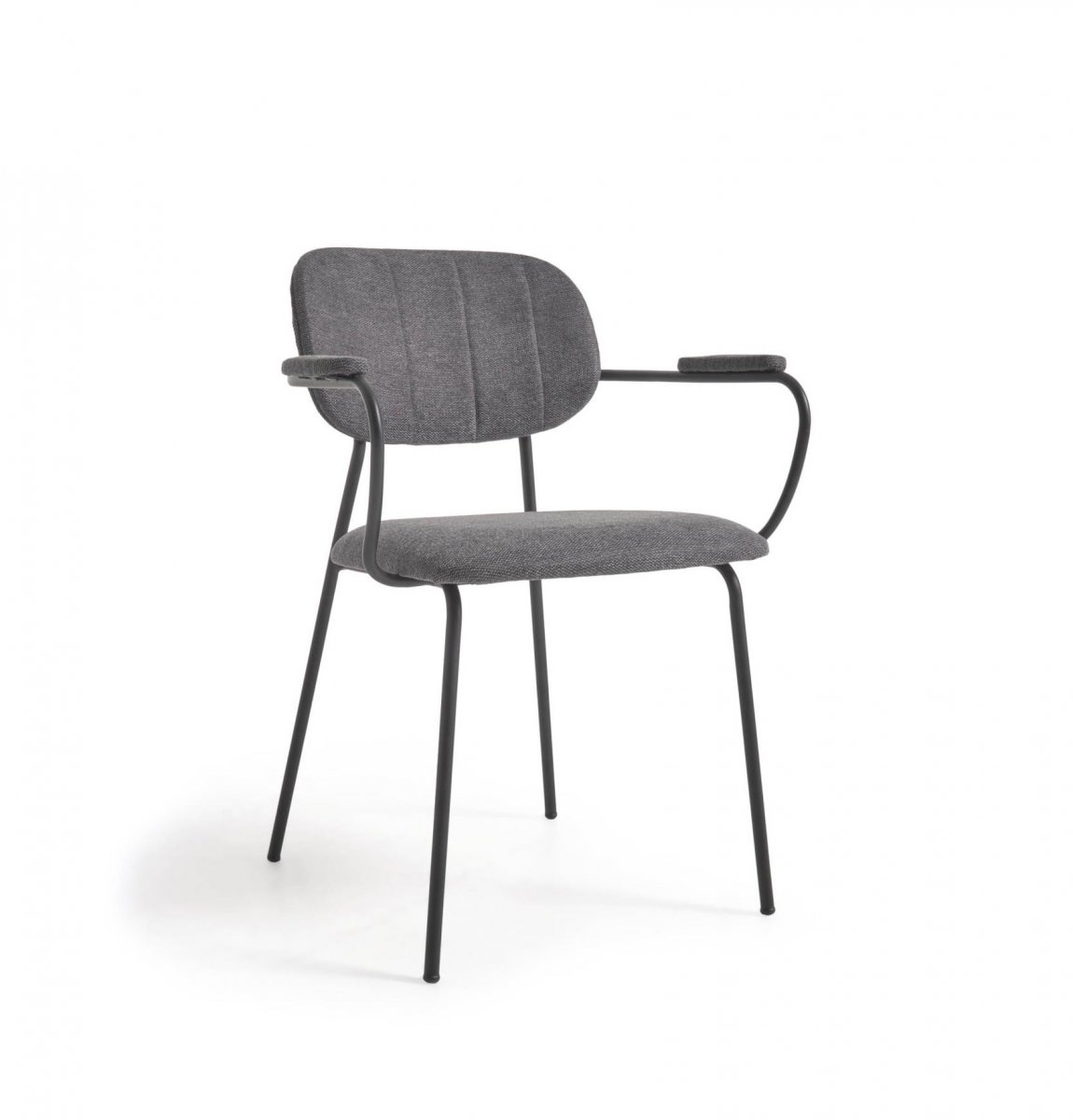 Стул Auxtina имеет мягкое сиденье с удобной спинкой и подлокотниками. Обивка сиденья из износоустойчивой ткани. Прочные ножки выполнены из качественного металла и окрашены надежной порошковой краской в черный цвет.