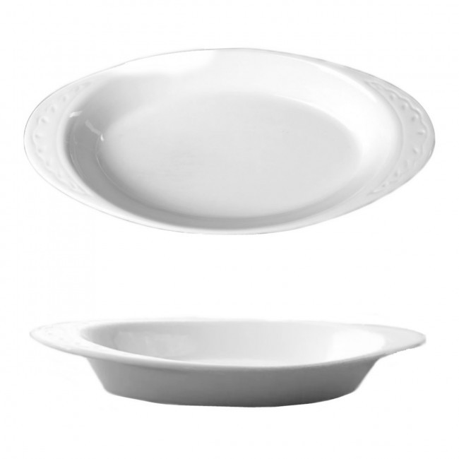 Фарфоровая белая тарелка с ушками HR1196 от бренда HELIOS выполнена из высококачественного фарфора, располагает аккуратной формой и удобством в использовании.