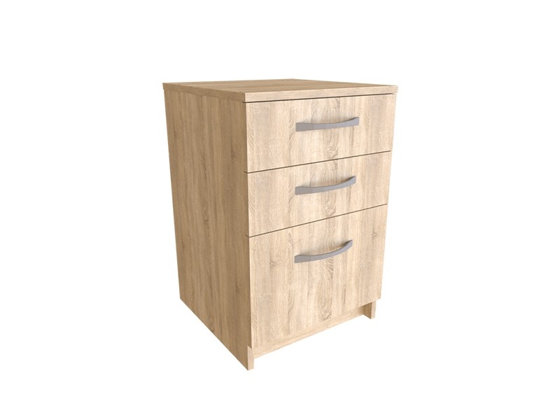 Тумба Kira компактна и удобна в использовании, три выдвижных ящика подойдут для мелкой канцелярии, бумаг и документов. Габариты позволяют разместить принтер, ксерокс или факс.