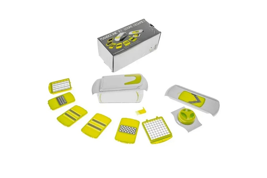 Многофункциональная терка для овощей и фруктов – ваш надежный помощник на кухне. Вы сможете нарезать продукты кубиками и ломтиками разного размера. Контейнер удобно использовать для хранения салатов. Набор можно мыть в посудомоечной машине. Компактная терка не занимает много места на кухне, экономит время и силы. С ее помощью вы быстро и качественно сможете измельчить овощи и фрукты. В комплекте: 1. Контейнер. 2. Крышка с двумя съемными лезвиями. 3. 5 насадок для крупной и мелкой нарезки. 4. Инструмент-гребенка для удаления остатков пищи. 5. Держатель для продуктов.