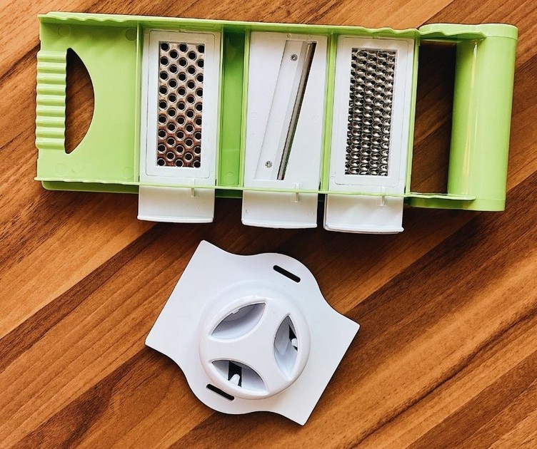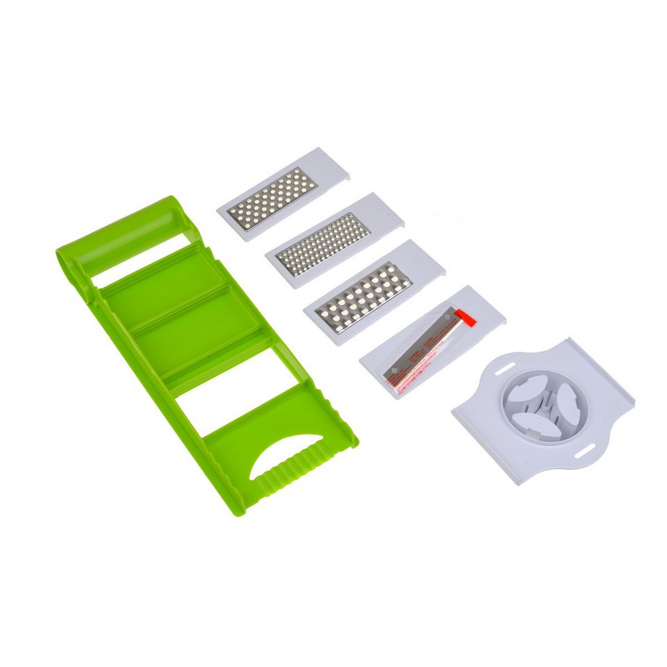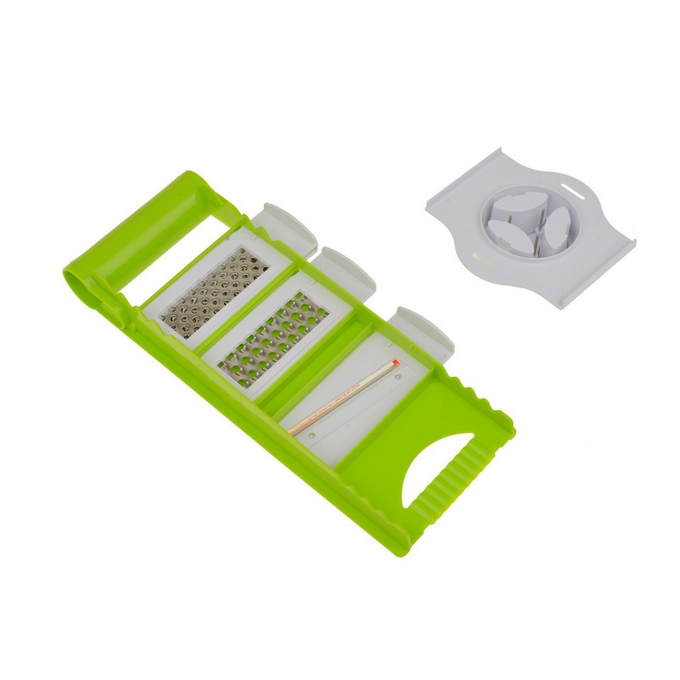 Для безопасного и быстрого приготовления различных овощных блюд отлично подойдет стильная терка NRP44GRAT, которую предлагает ТМ Lora. Терушка оборудована пластиковым держателем с металлическими шипами. Острые шипы надежно удерживают любой плод, поэтому тереть морковь, свеклу, яблоки, шинковать капусту просто и безопасно. Ваши пальцы будут целыми и без порезов. В набор, кроме держателя, входят три модуля-терки: для картофеля, для свеклы, для шинковки капусты. Все элементы сделаны из пищевого пластика и нержавеющей стали. Они компактно складываются для хранения. Ярко-зеленый цвет терки отлично гармонирует с другими изделиями этой серии – измельчителем и набором для овощей и фруктов.