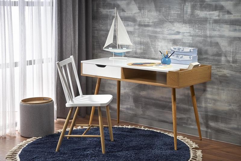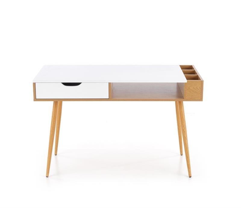 Стол компьютерный с выдвижным ящиком. Изготовлен из ламинированной ДСП. Опоры изготовлены из дерева.