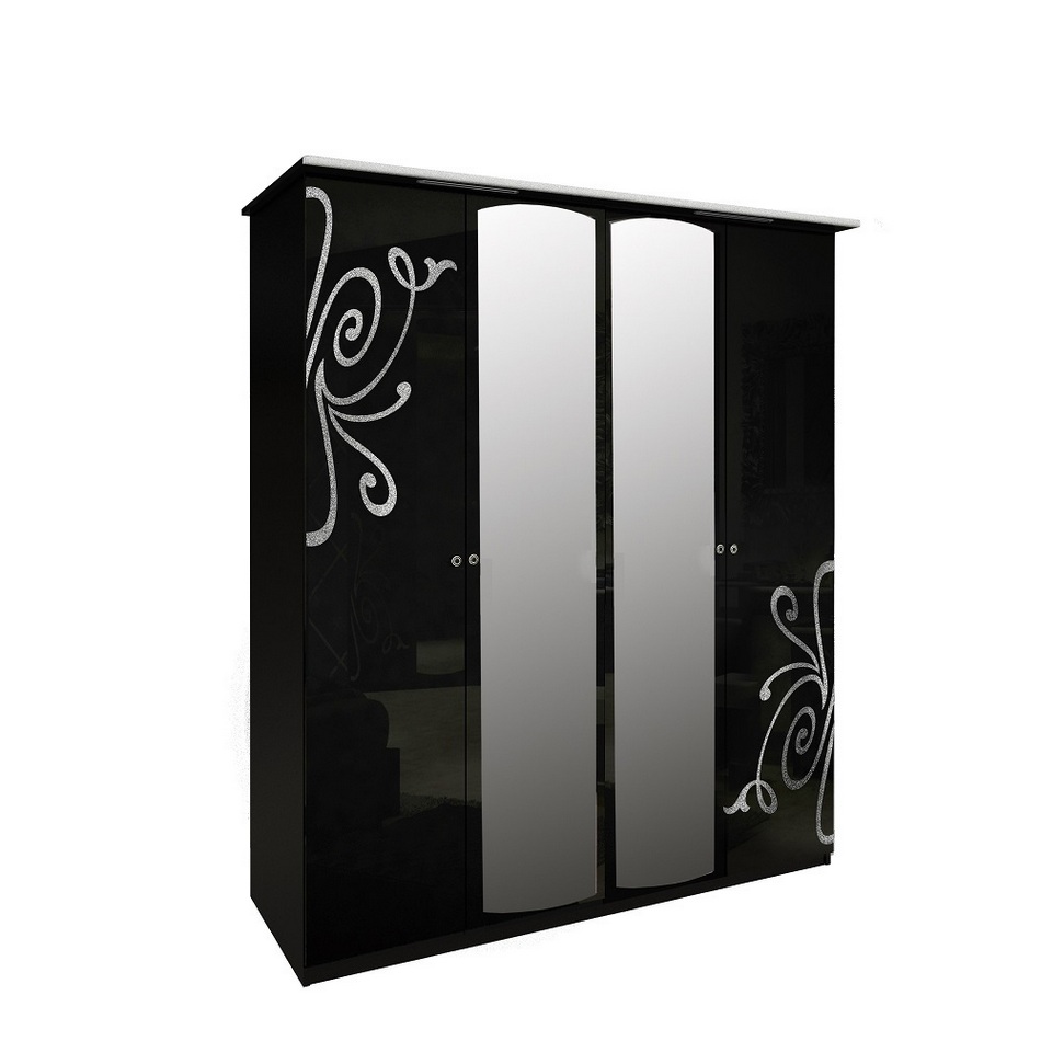Уникальный дизайн шкафа "Богема" гармонично вливается в любой интерьер помещения. Современное и оригинальное исполнение с мягкими линиями в дизайне гарнитуры создает атмосферу покоя. Узор на фасадах выполнен высококачественными красками – многоцветная шелкография. Шкаф четырехстворчатый, с зеркалом. На выбор по цветам: черный, белый.