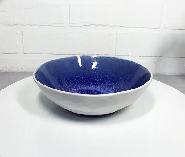 Серия тарелок и салатников Кюрасао – это прекрасный выбор как для праздничной сервировки стола, так и для повседневной трапезы. Красивый рисунок тарелок цвета ультрамарин, покрытый глазурью, создаст уют в стиле фэнтези, и придаст Вашему мероприятию нотку таинственности.