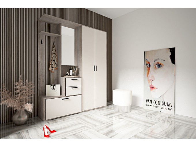 Мебель для прихожей "Тиволи" - это комплект мебели, который поможет организовать пространство в прихожей максимально функционально и эстетично. "Тиволи" состоит из секции с крючками, шкафа и пенала для одежды с микролифтом, обеспечивающих удобное хранение одежды и аксессуаров.