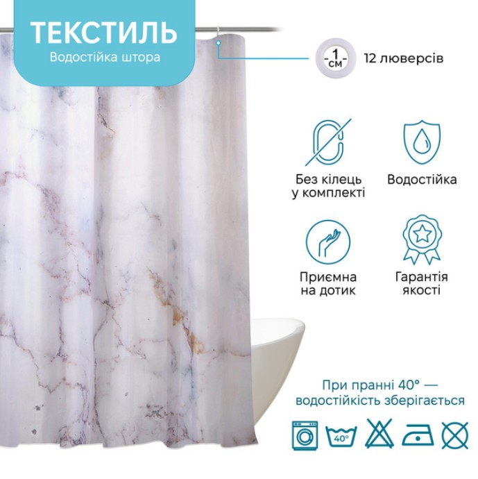 Шторка для душа ТМ TIANA KRAINE изготовлена из высококачественного материала, полиэтиленвинилацетата, который обеспечивает долговечность и устойчивость к износу Новейшие технологии в производстве включают обработку материалов водоотталкивающими и антиплесневыми средствами, что предотвращает образование пятен и неприятных запахов, а также