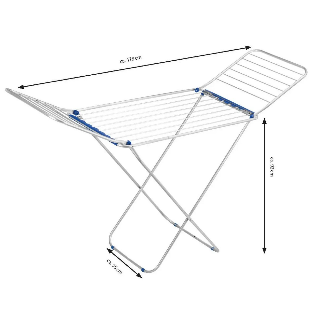 Легкая алюминиевая конструкция позволит передвинуть, сложить и разложить сушилку без чрезмерных усилий. Метод сборки обеспечивает минимальную толщину сушилки в сложенном виде, благодаря чему ее можно поместить на хранение в нишу шириной всего 3 см. Пластиковые ножки сохранят поверхность пола от повреждения. Пластиковые панели прикрывают места соединения элементов сушилки, делая ее вид более эстетичным, а использование безопасным.