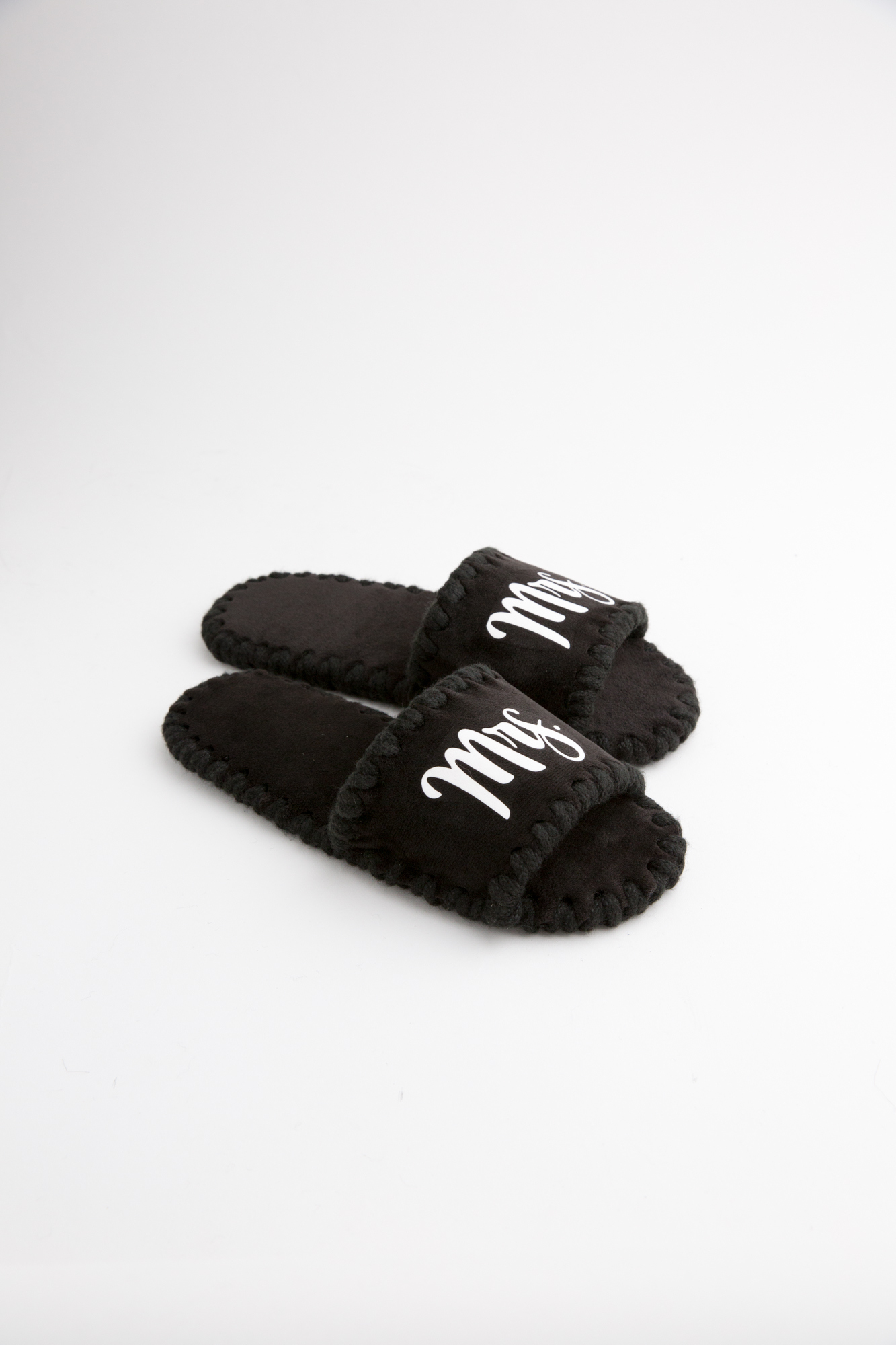 Женские домашние тапочки с открытым носком. Рисунок с флоковым нанесением Mrs на основе черного цвета. Данная модель выполнена на фетровой подошве со специальным антискользящим покрытием, на верхней части – эко-замша, стелька – мягкий велюр. Тапочки очень хорошо переносят многоразовую стирку в стиральной машинке. Очень удобные, невесомые и бесшумные.