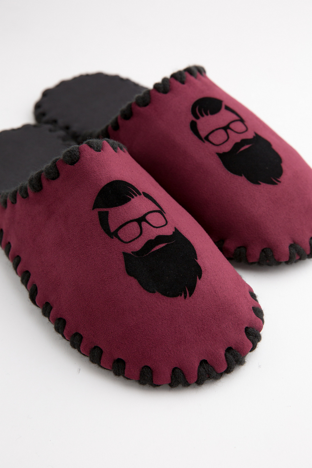 Мужские домашние тапочки с закрытым носком. Рисунок с флоковым нанесением Бородач на основе сливового цвета. Данная модель выполнена на фетровой подошве со специальным антискользящим покрытием, на верхней части – эко-замша, стелька – мягкий велюр. Тапочки очень хорошо переносят многоразовую стирку в стиральной машинке. Очень удобные, невесомые и бесшумные.