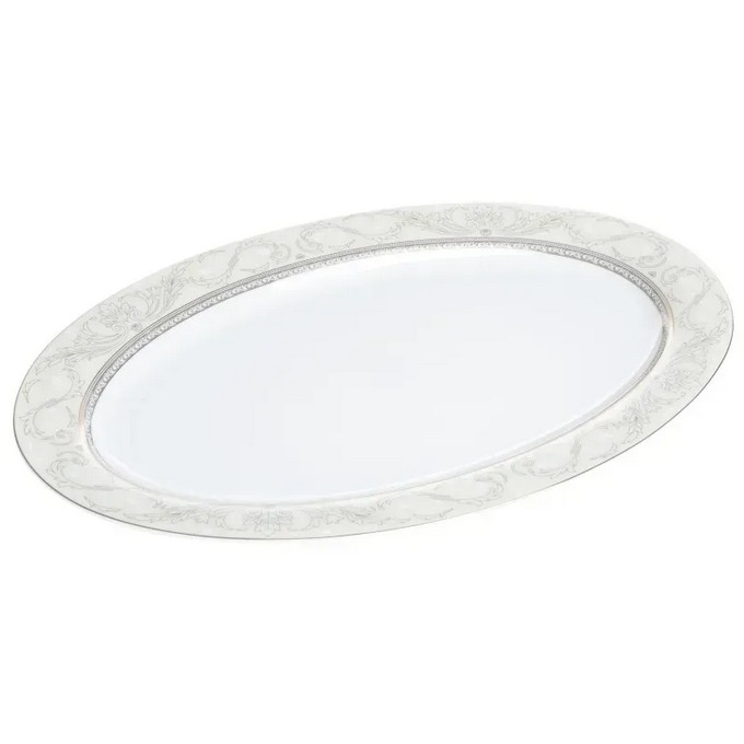 Блюдо универсальное, выполненное из материала костяной фарфор цвета белый.