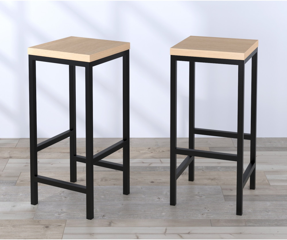 Стілець барний BS-1 – це класична модель стільця в стилі лофт. Він складається з надійного суцільнозварного каркаса та сидіння з ДСП. Стілець має поперечини для ніг, які знаходяться на оптимальній висоті, тому на ньому зручно сидіти. Це добротна, надійна та солідна модель стільця, яка підійде для будь-якого інтер'єру в стилі лофт або модерн. Каркас стільця виготовлено з металевої труби з профілем 25 × 25 мм. Товщина стінки труби 1,2 мм. Внизу каркаса є пластикові заглушки, що захищають підлогу від дряпання. Сидіння виготовлено з ламінованої ДСП завтовшки 32 мм. Воно прикріплюється до каркаса за допомогою гвинтів під шестигранник, які йдуть в комплекті.