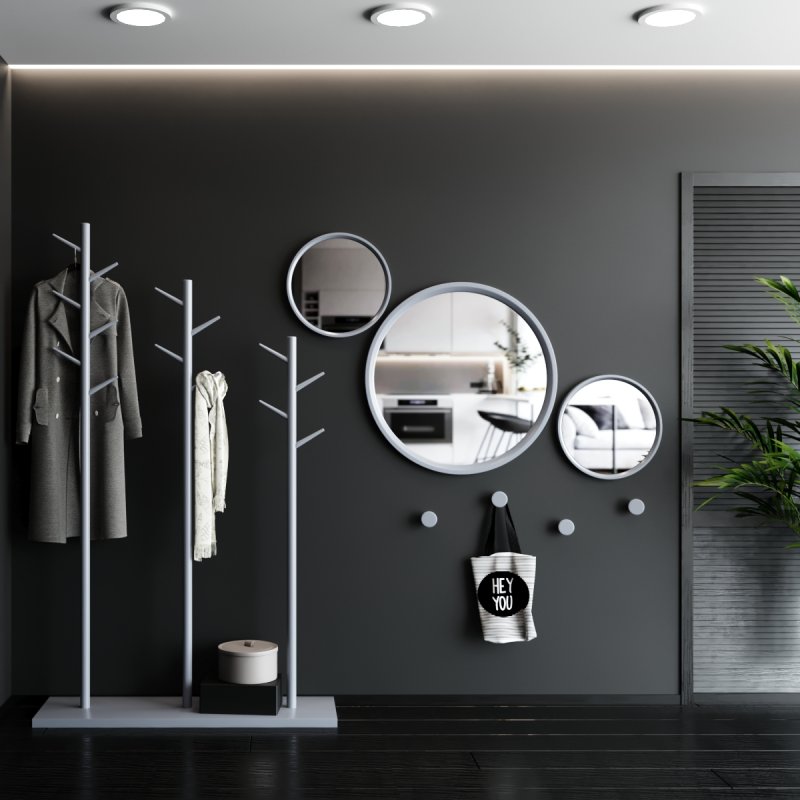 Три круглі настінні дзеркала з МДФ "Токіо" стануть прикрасою будь-якого коридору. Можете розмістити їх за своїм бажанням, вони чудово виглядатимуть разом або окремо одне від одного. Габаритні розміри двох менших дзеркал становлять (В/Ш/Г): 400×400×40 мм, більшого – 700×700×40 мм.