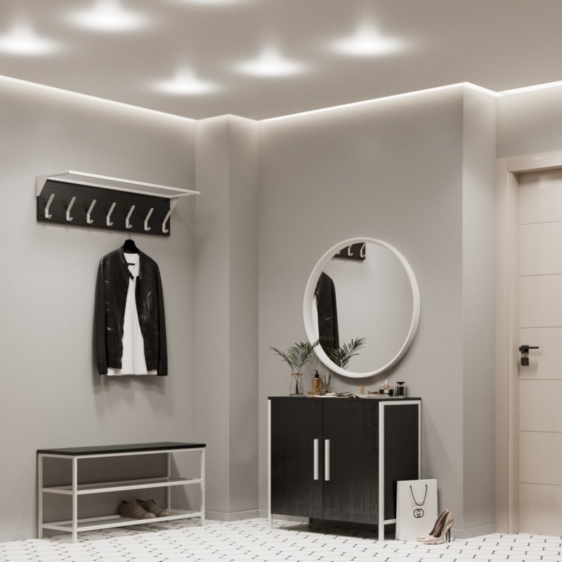 Настінна вішалка “ЛТ” має сім гачків та металеву полицю для зберігання головних уборів та різної галантереї. Верхній одяг також швидше висохне в меблях відкритого типу, ніж усередині шафи. Розміри вішалки складають (В/Ш/Г): 240 /990/ 280 мм.