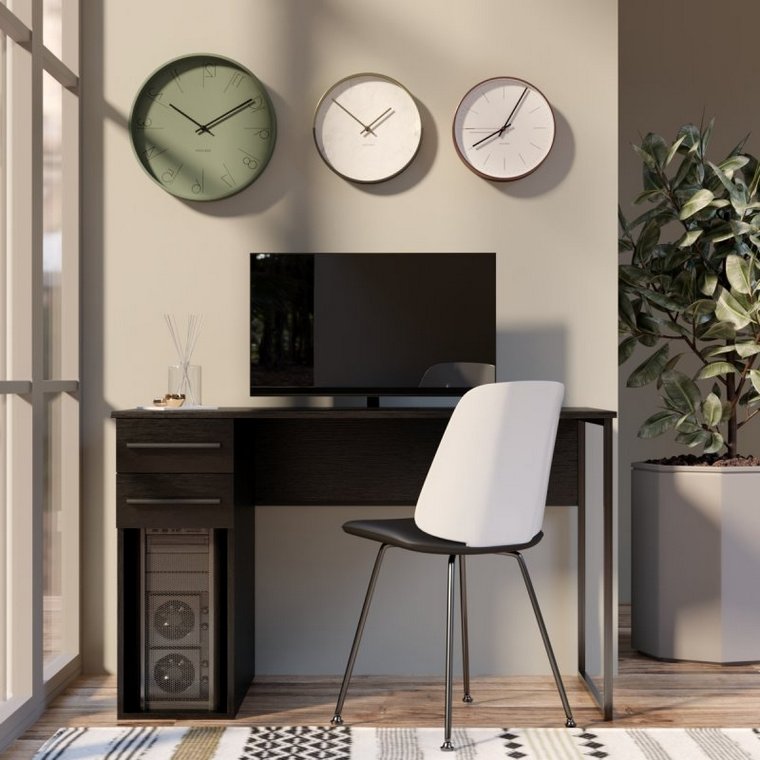 Модель має відкриту і просту конструкцію з ніжкою з одного боку і стійкою закритою підставкою з іншого. Металева стійка виготовлена з труби квадратного перерізу 20х20 мм, яка пофарбована порошковою фарбою. Стільниця і тумба з якісної ЛДСП товщиною 16 мм. У столі також є дві висувні шухляди на телескопічних направляючих. Вони забезпечують їх плавне і безшумне відкривання. Зі зворотного боку столу передбачена задня стінка, а зі зворотного боку ніші — віконце для виведення проводів.