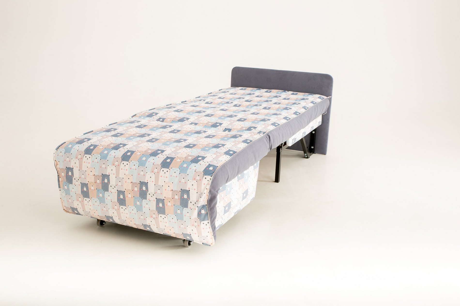 Безпружинний матрац висотою 10 см. Усередині якісний ППУ, флізеліновий внутрішній чохол та верхній чохол із оббивної тканини. Разом з буковими ламелями (розташованими як у звичайному ліжку) матрац створює рівне спальне місце.