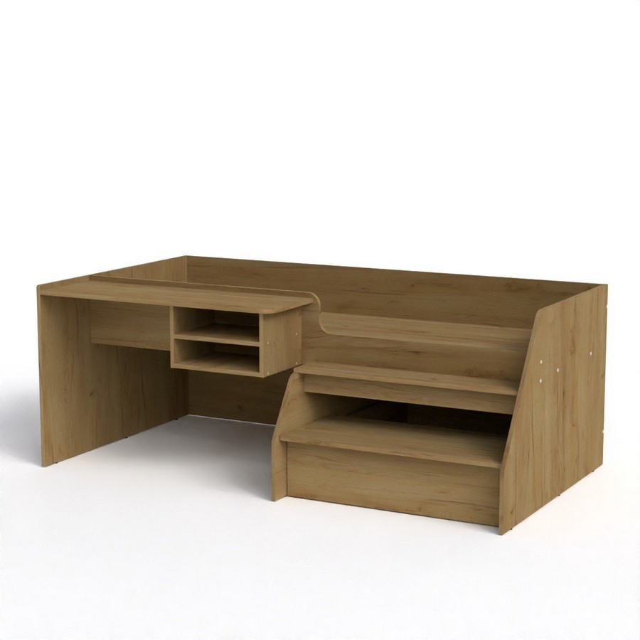 Ліжко Універсал-3 стане ідеальним варіантом для дитячої, підліткової кімнати, адже воно не тільки створює місце для сну, але і місце для навчання і розвитку творчих здібностей дитини! Ліжко виконується в натуральних деревних відтінках, тим самим ви зможете підібрати найкращий варіант під ваш інтер'єр. Незвичайне поєднання письмового столу, ліжка, і висувного ящика-сходів створює неповторне стильне поєднання краси і елегантності виконання.