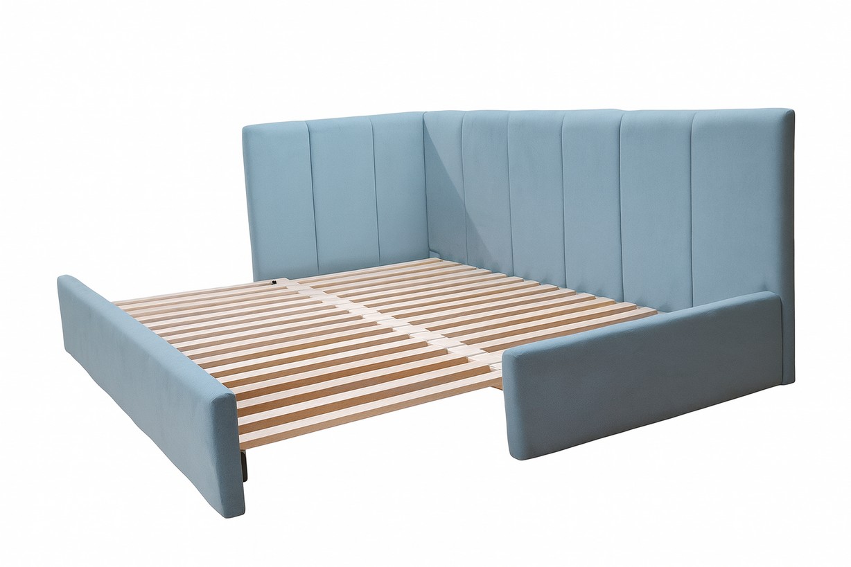 За бажанням можна обрати інший колір та тканину, додати бильця (як на останніх фото) , додатково можна придбати матрас для даної форми ліжка (матрас складається в два)- ціну уточнювати.