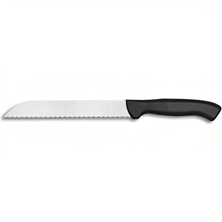 Ніж для хліба зі зручною ручкою та довгим лезом. Ножі серії Premium виготовлені з високоякісної французької сталі товщиною 3 мм. До заточування кухар зможе нарізати таким ножем 60 кг хліба.
