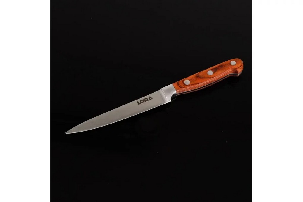 Універсальний ніж NS45KN/Wood, 24.5х2 - це компактний та багатофункціональний виріб. Він використовується для нарізки багатьох продуктів. Ним ріжуть: овочі, хліб, сири, ковбаси, рибу тощо. Лезо зроблене з якісної нержавіючої вуглецевої сталі з високими антикорозійними властивостями. Руків'я виготовлене з деревини. Воно зручне, надійно кріпиться до леза. Ширина леза - 2 см. Ніж збалансований, ним можна різати довгий час - рука не втомиться. Для заточки використовують мусат або точило.
