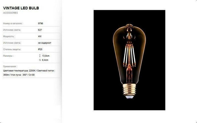 Лампа Nowodvorski Bulb Vintage Led 4w, 2200k, E27, Angle 360
