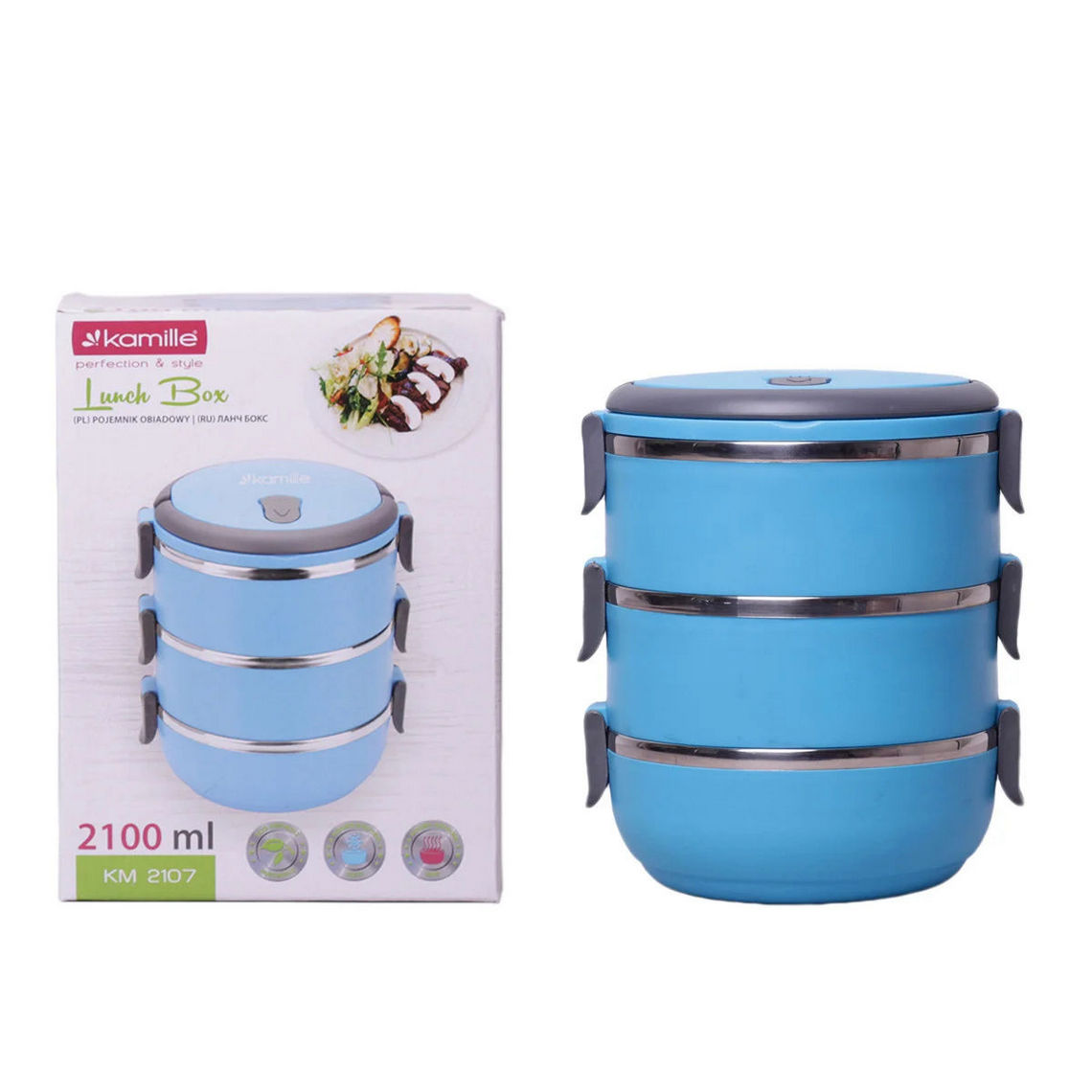 Ланч бокс обідній потрійний Kamille Блакитний 2100 мл