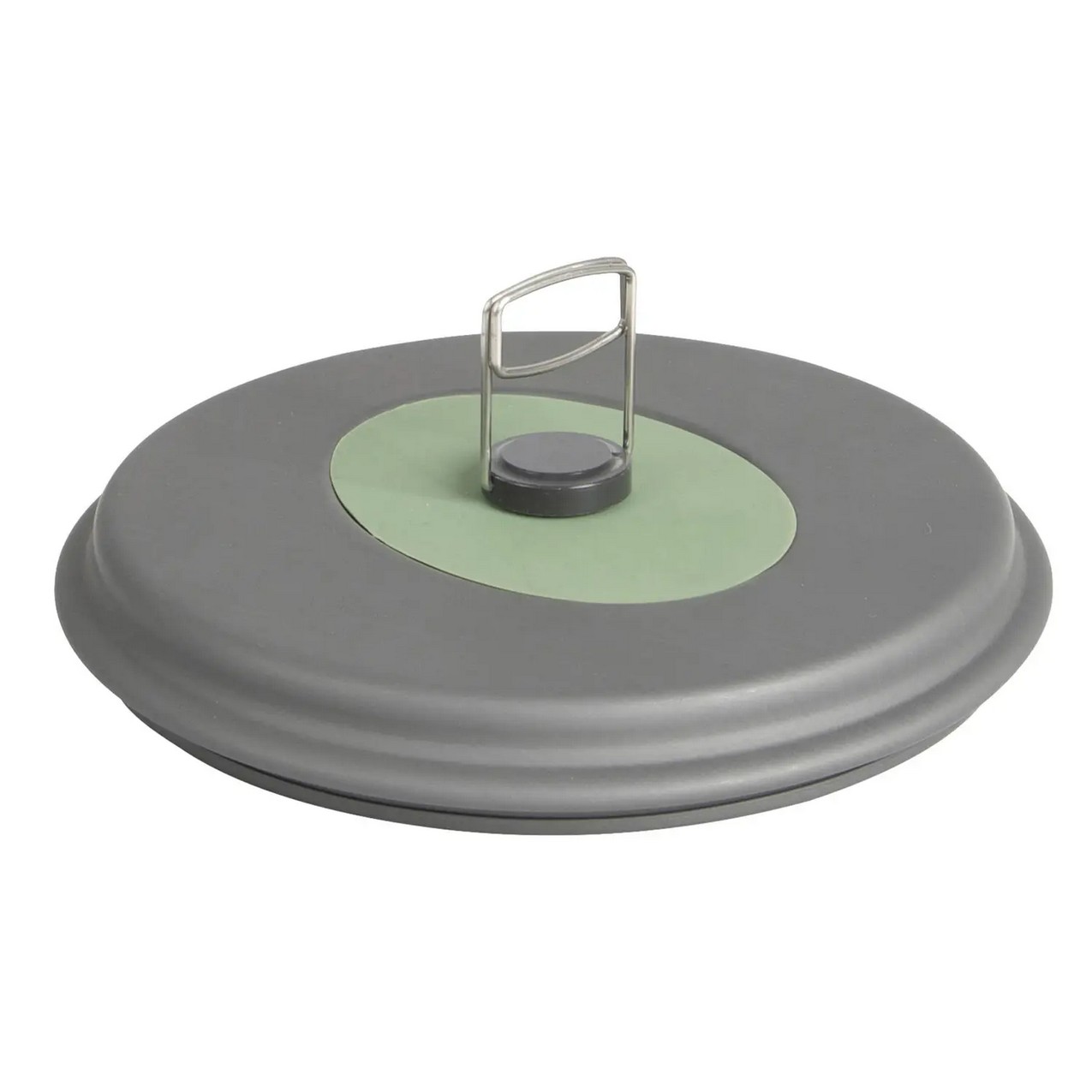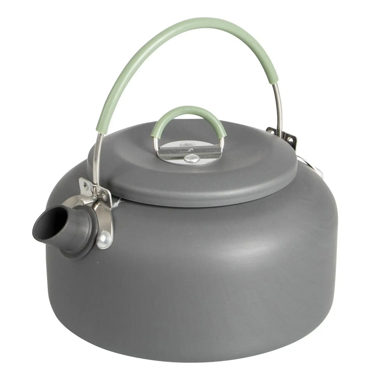 Набір складається з двох каструль, кришок до них, сковороди і чайника. Весь посуд виготовлений із легкого анодованого алюмінію, який завдяки високій теплопровідності значно прискорює приготування їжі та економить паливо. А складні ручки з покриттям із термостійкого силікону можна легко скласти після використання, щоб весь набір посуду можна було компактно зберігати та транспортувати.