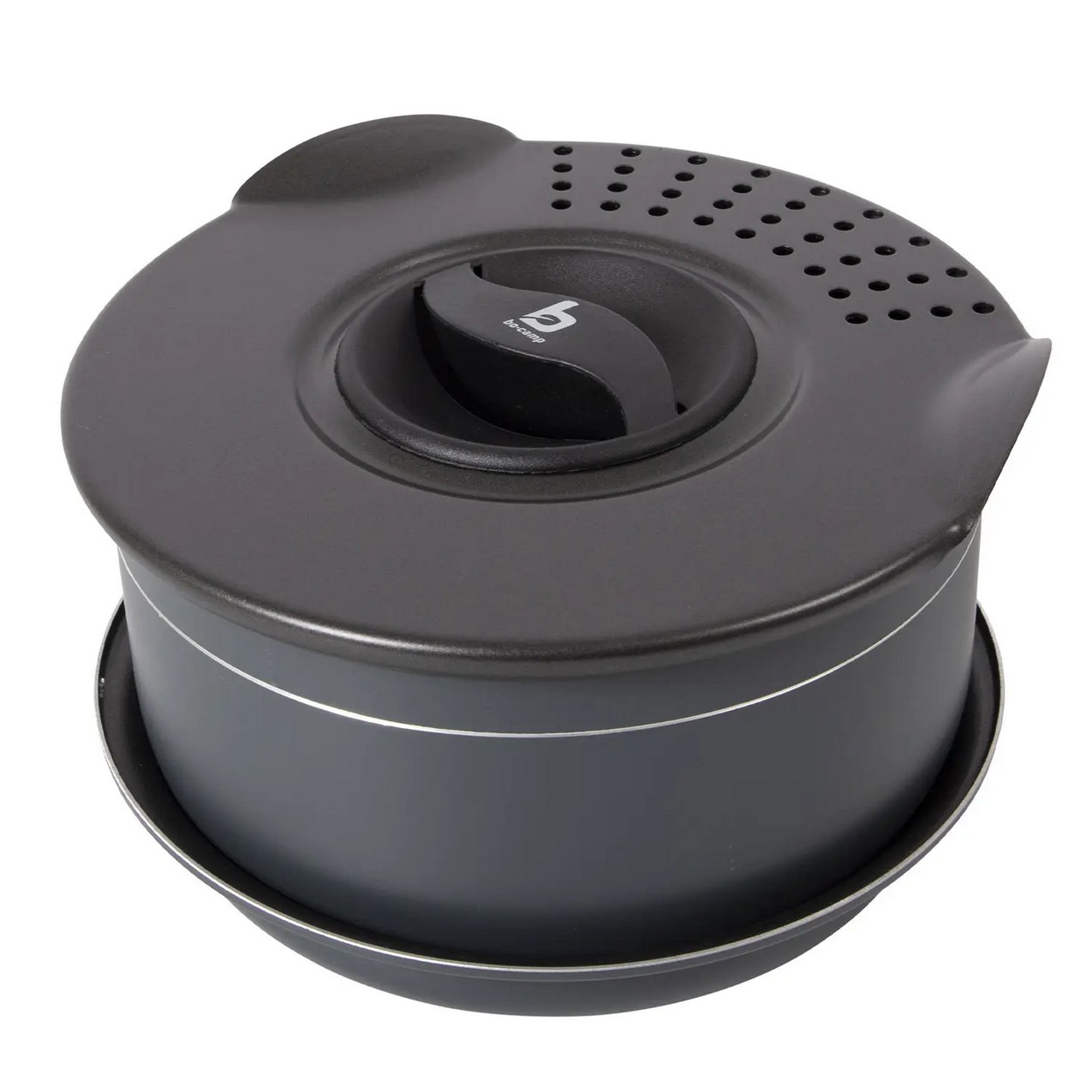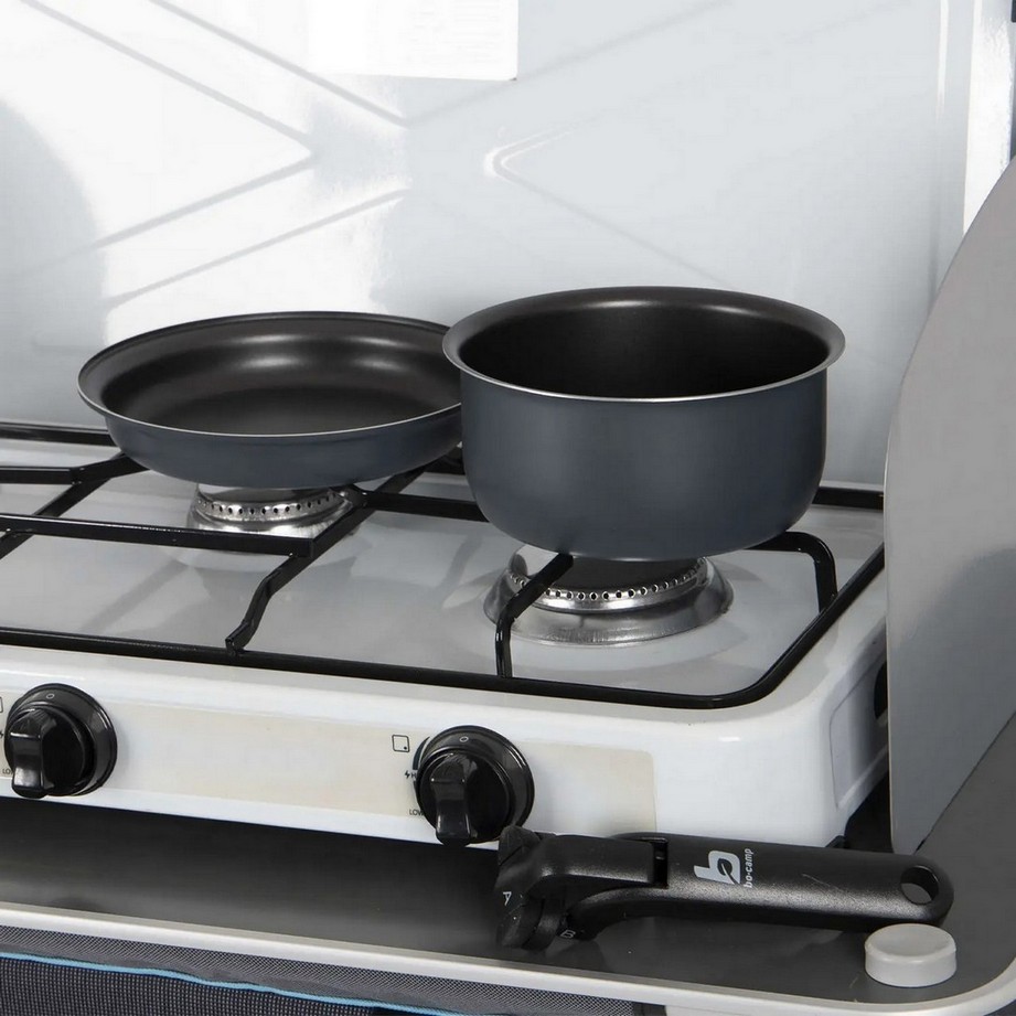 Bo-Camp Trekking 5 Pieces Anthracite – це компактний і практичний набір посуду з антипригарним покриттям для кемпінгу та експедицій, розрахований на групи до 3-4 осіб.