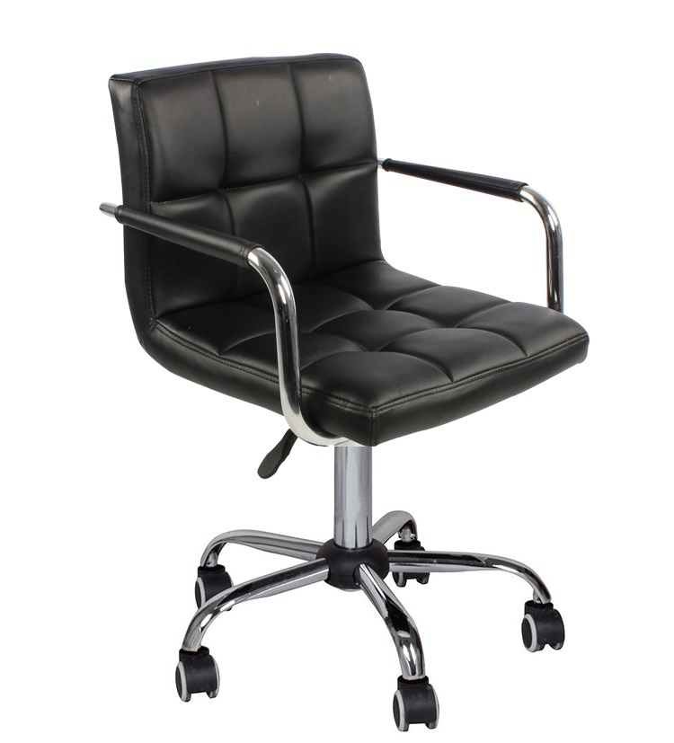 Крісло м'яке, сидіння, матеріал екошкіра, регулюється по висоті, фурнітура хромована, підлокітники хромовані з накладками чорного кольору.