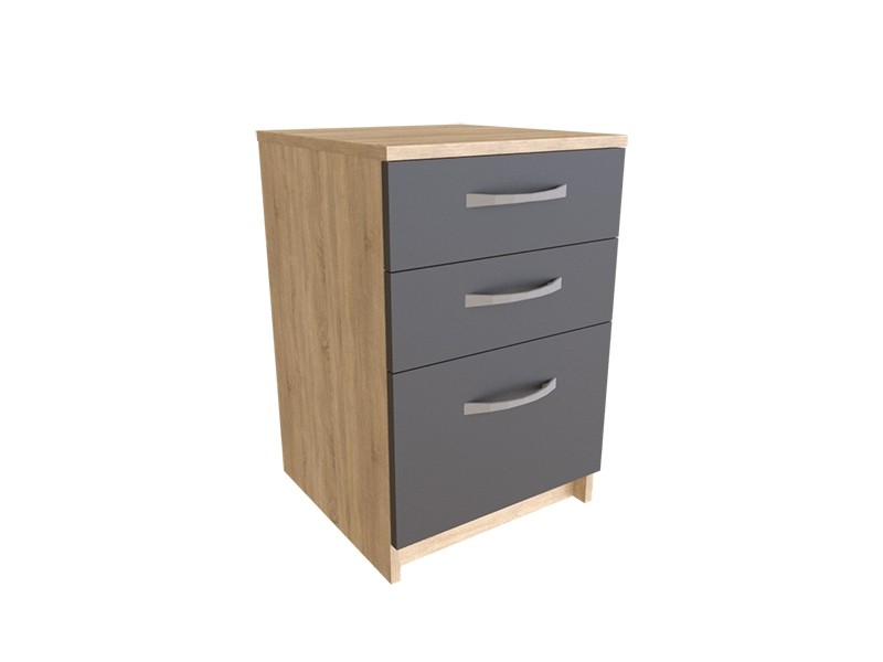 Тумба Kira компактна і зручна у використанні, три висувних ящика підійдуть для дрібної канцелярії, паперів і документів. Габарити дозволяють розмістити принтер, ксерокс або факс.