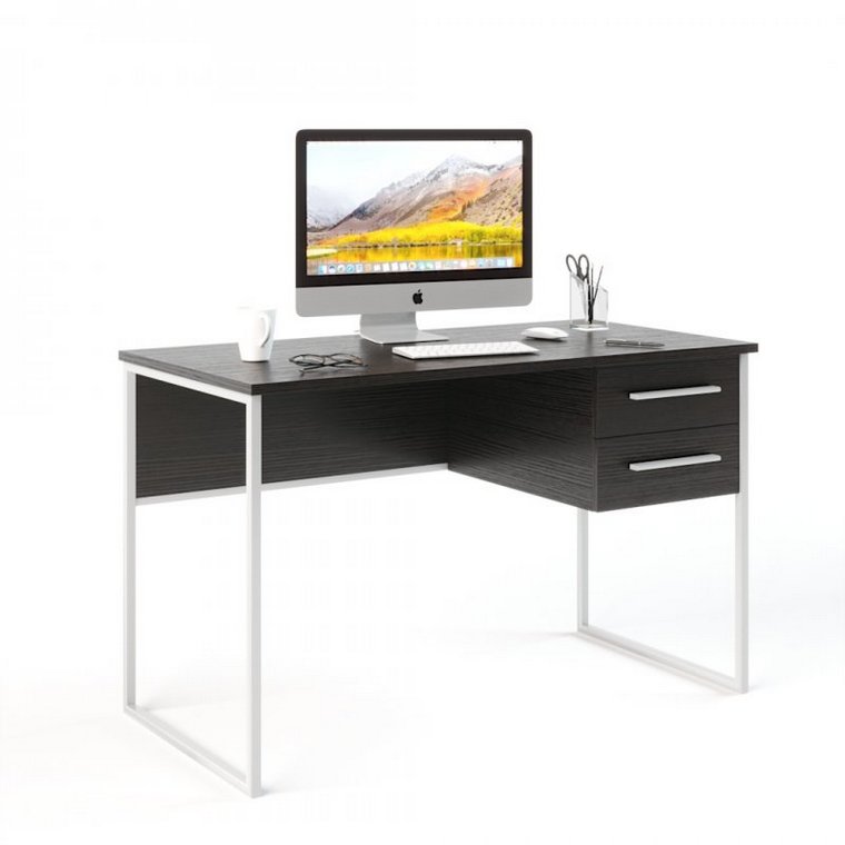 Модель має відкриту і просту конструкцію. Металевий каркас виготовлений з труби квадратного перерізу 20х20 мм і пофарбований порошковою фарбою. Стільниця і тумба з якісної ЛДСП товщиною 16 мм. В столі також є дві висувні шухляди на телескопічних направляючих. Вони забезпечують їх плавне і безшумне відкривання. Зі зворотного боку столу передбачена задня стінка.
