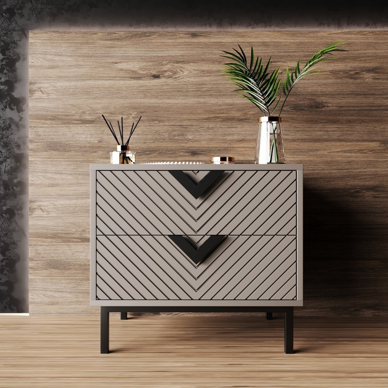 Розмір виробу досить компактний: 495х540х370. Вона зручно стане біля стінки, поряд із шафою, ліжком або у кутку. До комплекту входить сама тумба та фурнітура. Тумба в спальню одночасно може використовуватися як підставка для світильника, книги, квітів та інших предметів, що завжди мають бути під рукою. Виріб гармонійно поєднується з іншими предметами інтер'єру, створюючи стильову композицію. Матеріал МДФ — якісний та надійний вибір у поєднанні з металом, що дозволяє використовувати тумбу не один десяток років. Конструкція моделі на ніжках надає приміщенню легкості та вишуканості.