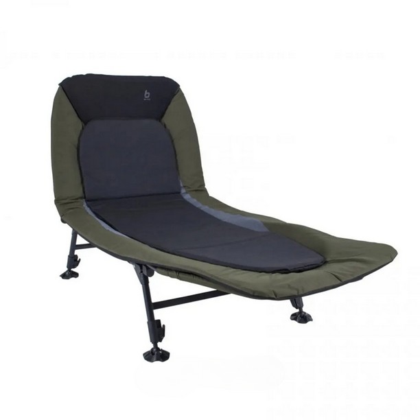 Дуже міцне та зручне кемпінгове ліжко Bo-Camp Sturgeon, підходить для рибалок. Оббивка виготовлена з міцного поліестеру 600D Oxford, а каркас із міцної сталі. Завдяки регульованій спинці його можна використовувати як у положенні лежачи, так і в положенні сидячи. Також обладнаний знімною подушкою. Підходить для будь-якої поверхні завдяки індивідуально регульованим і посиленим ніжкам. Ідеально підходить для нерівних набережних. Рибне ложе повністю розкладне.