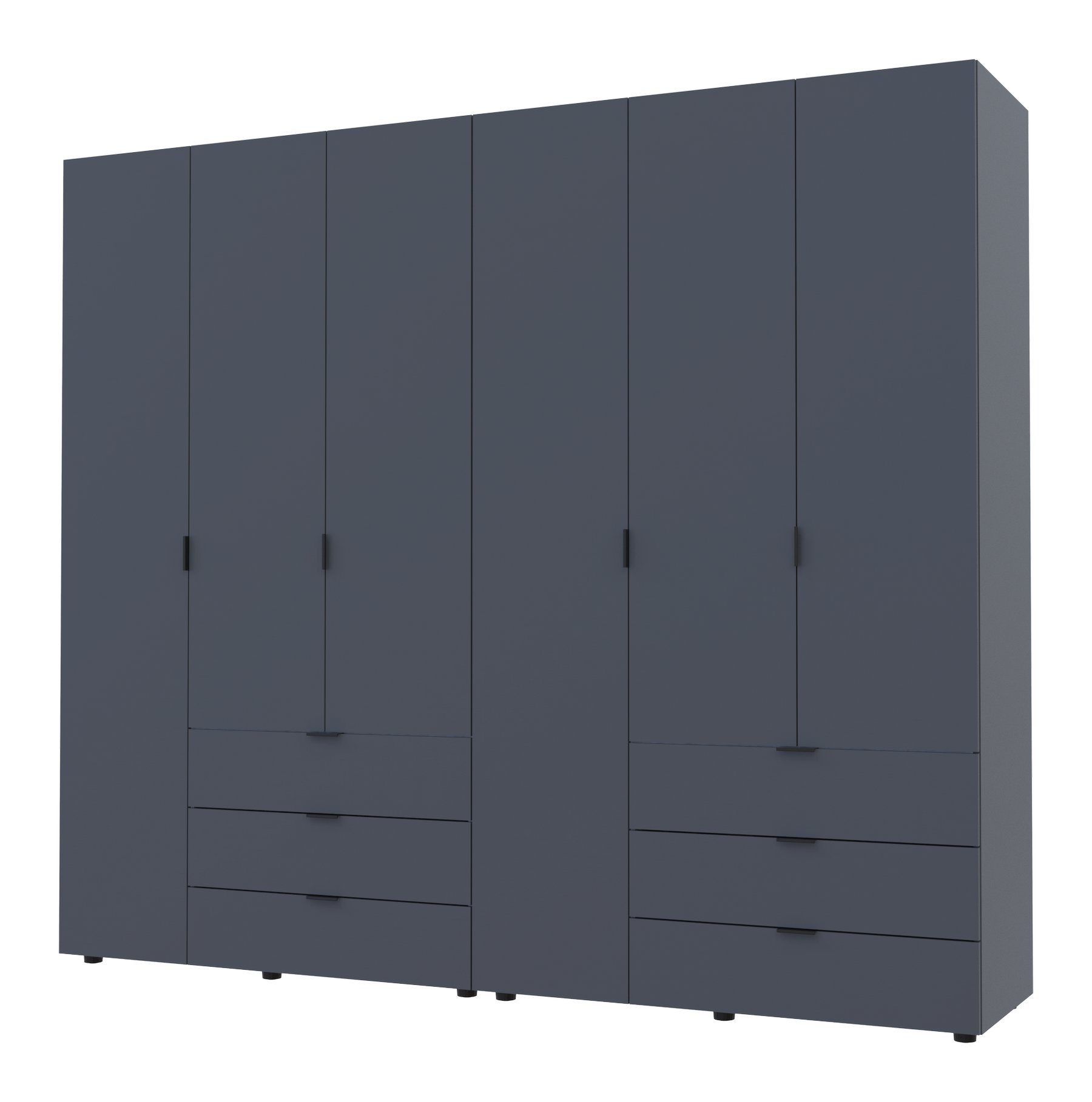Кожна з шаф має відділ зі штангою для вішаків, відділ з полицями та три широкі шухляди, що забезпечують великий обсяг зберігання для вашого одягу та інших предметів.