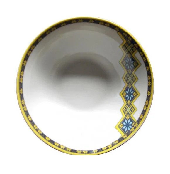 Колір зовнішній: Край салатника -смуга вишиванки з жовто-блакитним ромбом на білому тлі
