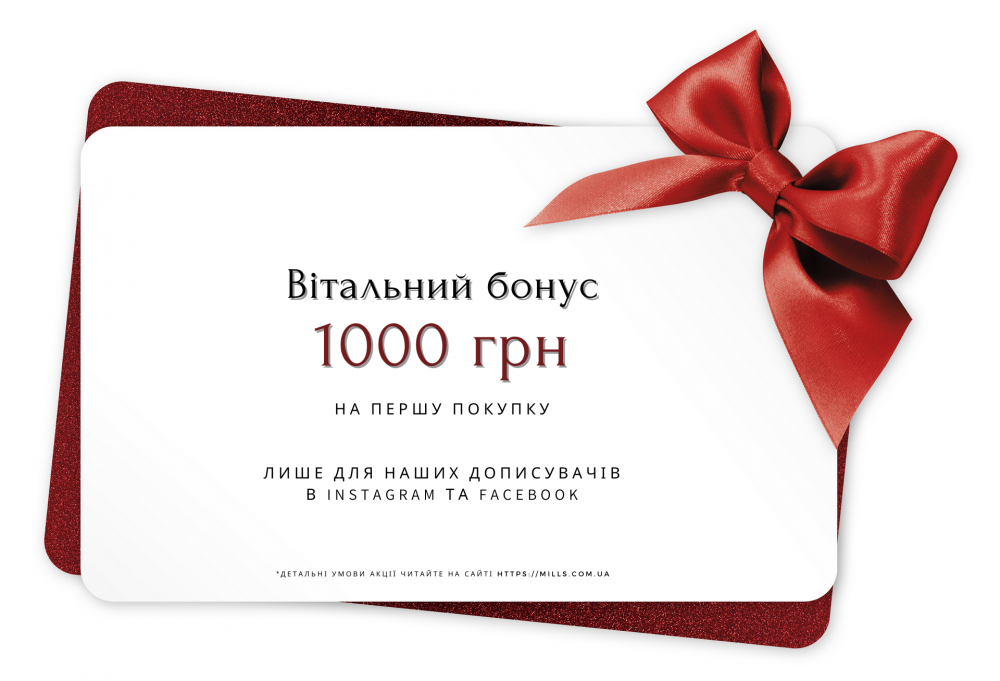 1. Вітальний бонус дає право на отримання знижки у розмірі до 1000 грн на перше замовлення.