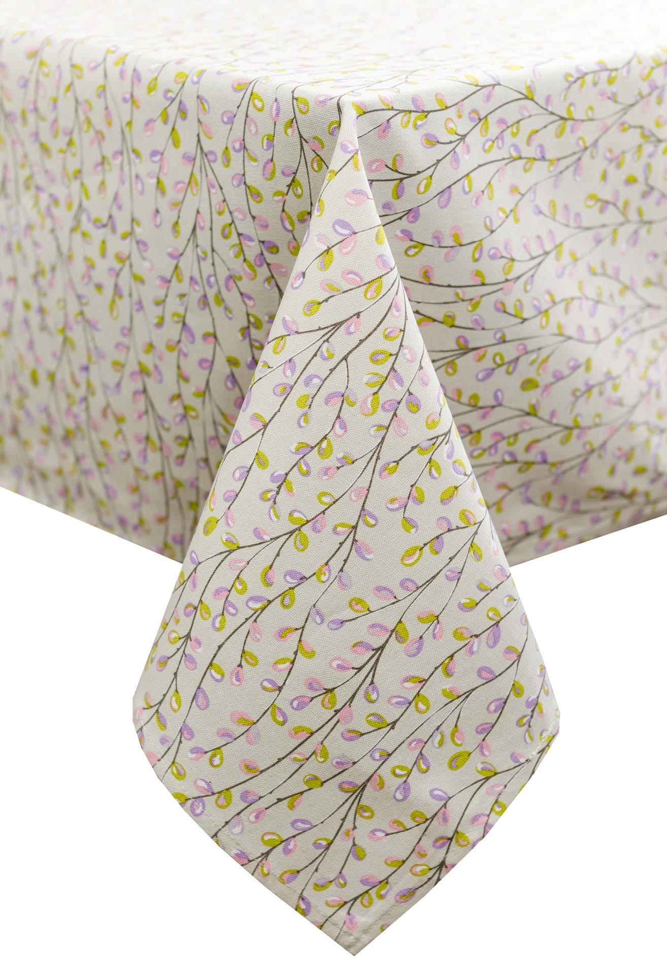 Скатертина Гілочки прикрасить вітальню або кухню. Забарвлення відмінно гармоніюватиме зі світлими тонами меблів і текстилю в інтер'єрі. Якісна іспанська тканина складається зі 100% бавовни і завдяки цьому приємна на дотик.