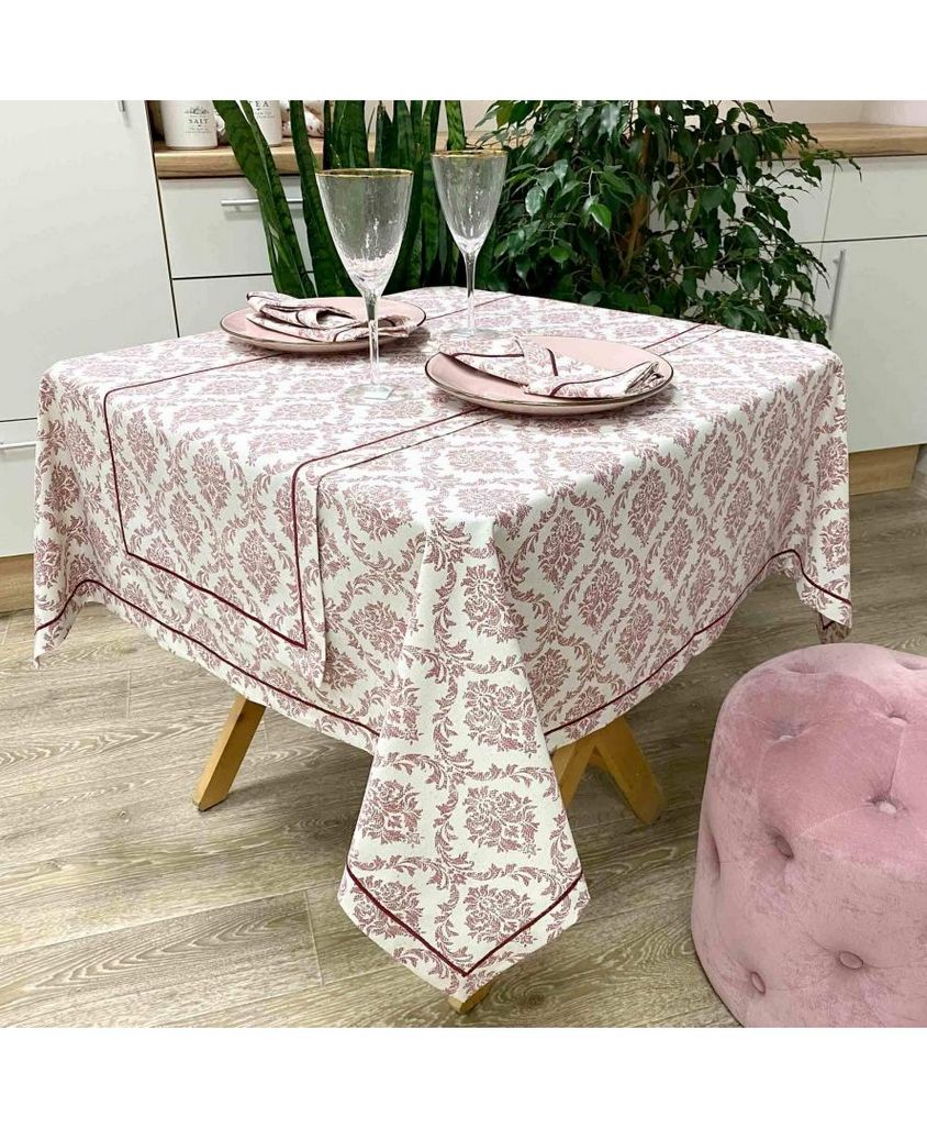Гарна скатертина прикрасить вітальню або їдальню, по краях вишивка. Забарвлення буде відмінно гармоніювати зі світлими і темними тонами меблів в інтер'єрі. Колекція Авантайм це екологічна лінія текстилю, частково створена з переробленого пластику. Що робить її сучасної та підкреслює прагнення людства до використання природних ресурсів грамотно. У представленій світу нової колекції, акцент спрямований на тканину з переробленої сировини. Колекція прекрасно підійде і в класичний англійський стиль, і в сучасний мінімалізм, і лофт. Переваги тканини в її щільності і ізносостiйкості, а також вона неймовірно приємна на дотик. Склад тканини: 32% бавовна, 59% поліестр, 9% акрил.