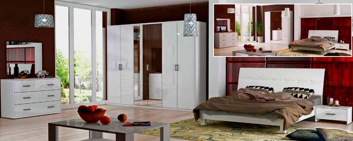 Легкий та світлий дизайн спальні "Roma" це чудове поєднання для кімнати у мінімалістичному стилі. Розкіш глянцю, прості форми та чіткі лінії характеризують цю спальню як чудову зону для відпочинку. Крім того, ми гарантуємо якість меблів, верхні кришки в комодах і тумбах виконані з надійної глянцевої плити МДФ. У шухлядах використовуються телескопічні направляючі.