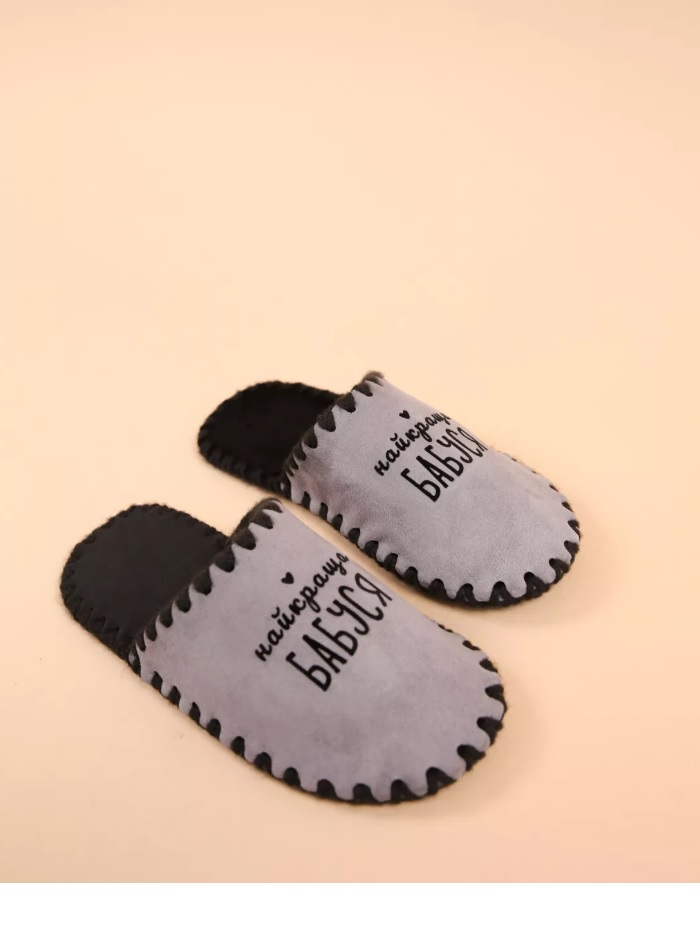 Жіночі домашні капці із закритим носком. Малюнок із флоковим нанесенням Найкраща Бабуся, на основі:графітового кольору. Дана модель виконана на фетровій підошві із спеціальним антиковзаючим покриттям, на верхній частині - еко-замш, устілка - м'який велюр. Капці дуже добре переносять багаторазове прання у пральній машинці. Надзвичайно зручні, невагомі та безшумні.