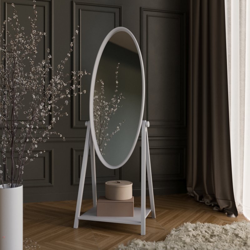 Дзеркало в інтер'єрі може підкоригувати простір: зробити його візуально просторішим, світлішим або, навпаки, зменшити габарити кімнати, надати їй строгої форми. Вибір дзеркала залежить від планування приміщення, його розмірів, а також загального стилю простору. Матеріал: масив берези, МДФ. Покриття: двокомпонентний поліуретановий лак, фарба. Розміри виробу: висота 1740 мм; ширина 570 мм; глибина 460 мм.