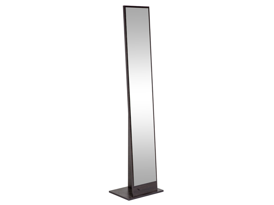 Стійка-дзеркало Квадрат практичне, компактне і оригінальне. Воно займає небагато місця в кімнаті і його можна з легкістю переміщати куди потрібно. Дзеркало виготовлене із ламінованого ДСП. Габаритні розміри: висота – 42 см, глибина – 30 см, висота – 174 см. Розмір дзеркала – 27х160 см.